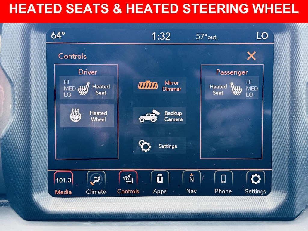 ENGINE: 2.0L I4 DOHC DI TURBO W/ESS, TRANSMISSION: 8-SPEED AUTOMATIC (850RE), QUICK ORDER PACKAGE 22G, 3.45 REAR AXLE RATIO, WHEELS: 18 X 7.5 POLISHED W/GRAY SPOKES, TIRES: 255/70R18 ALL-TERRAIN, BLACK CLEARCOAT, BLACK, CLOTH LOW-BACK BUCKET SEATS, GVWR: 5,500 LBS, 8.4 RADIO & PREMIUM AUDIO GROUP, COLD WEATHER GROUP, BLACK 3-PIECE HARD TOP, FRONT LICENSE PLATE BRACKET, MOPAR BLACK TUBULAR SIDE STEPS, RADIO: UCONNECT 4C NAV W/8.4 DISPLAY, ALPINE PREMIUM AUDIO SYSTEM, REMOTE START SYSTEM, REMOTE PROXIMITY KEYLESS ENTRY