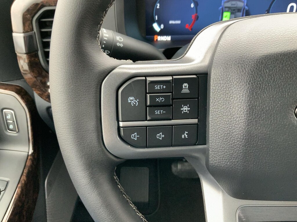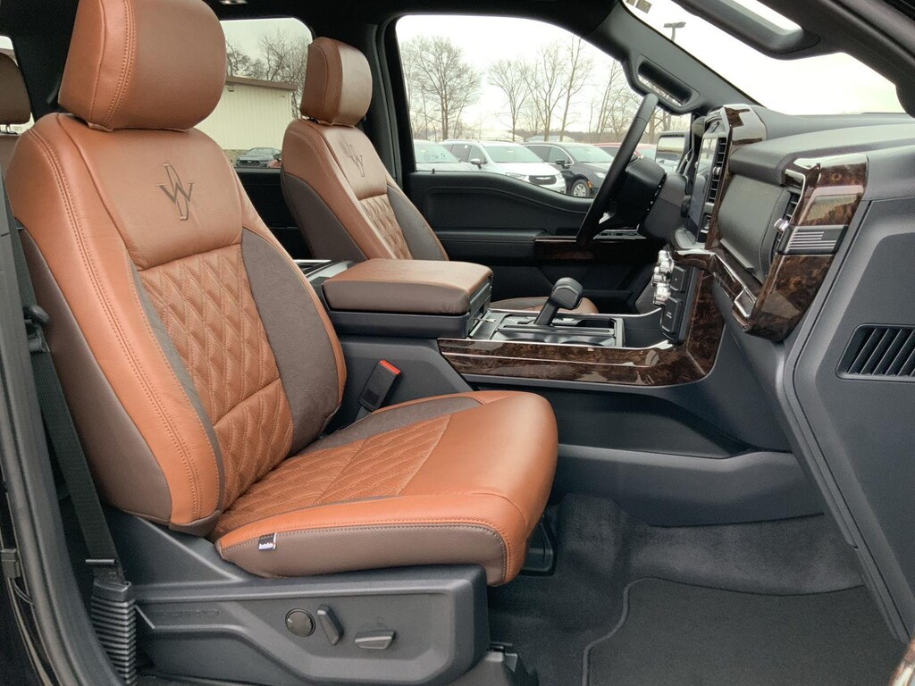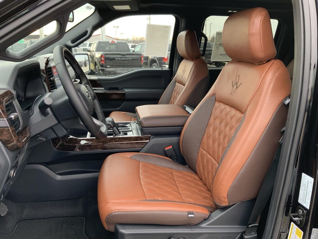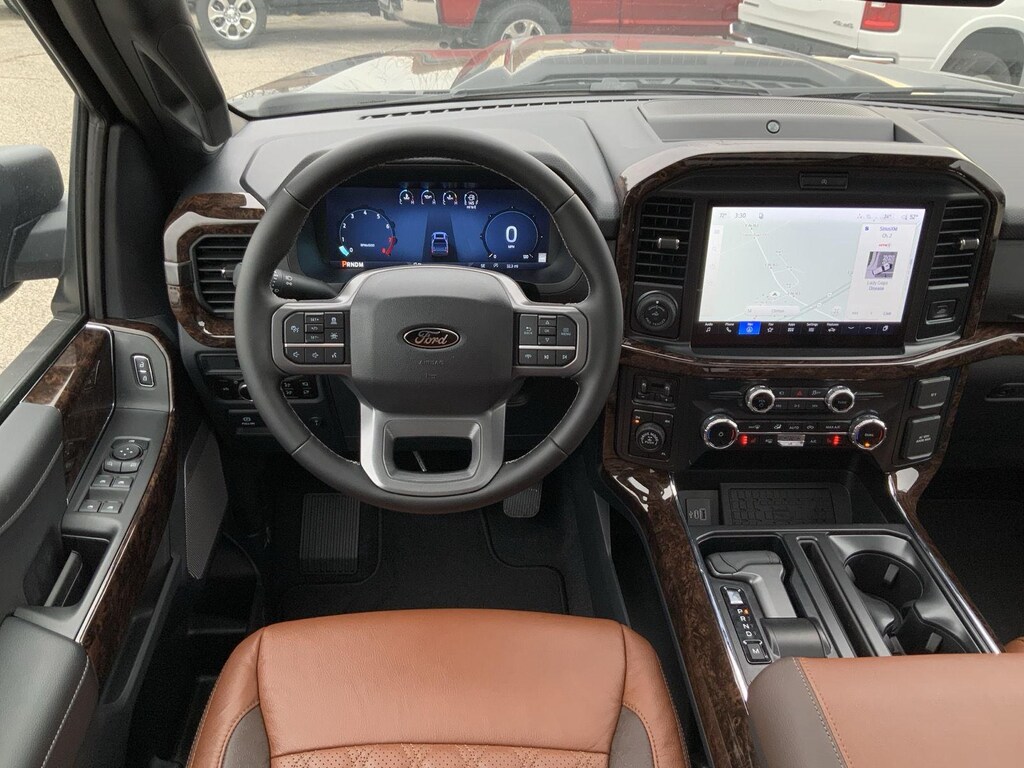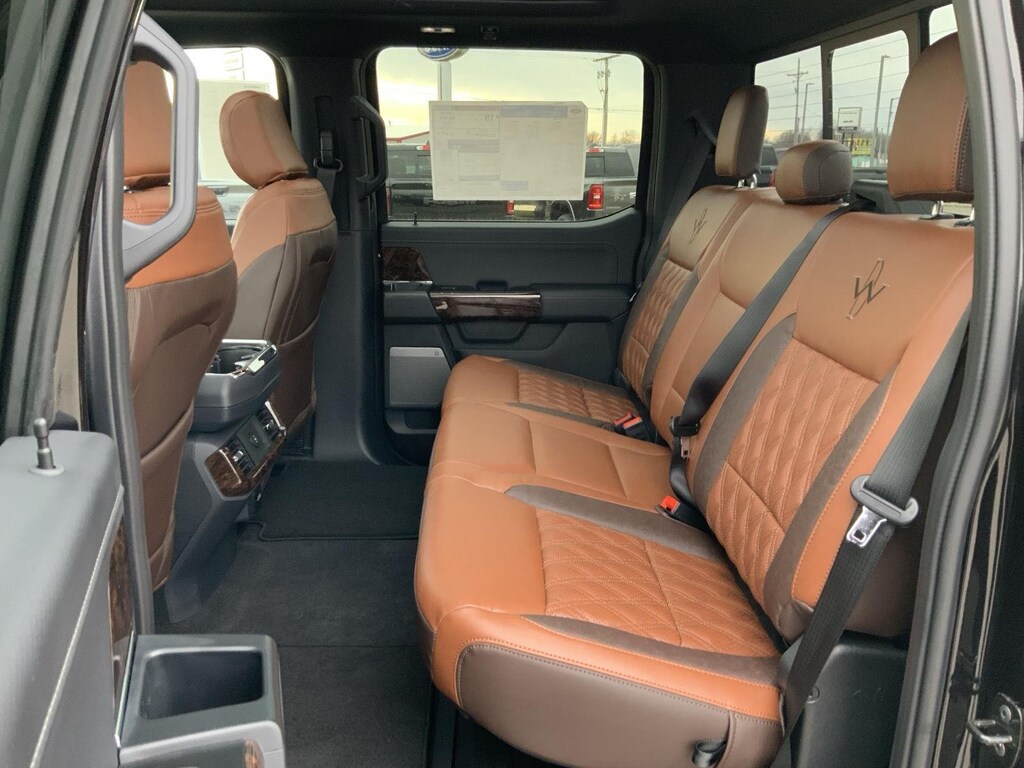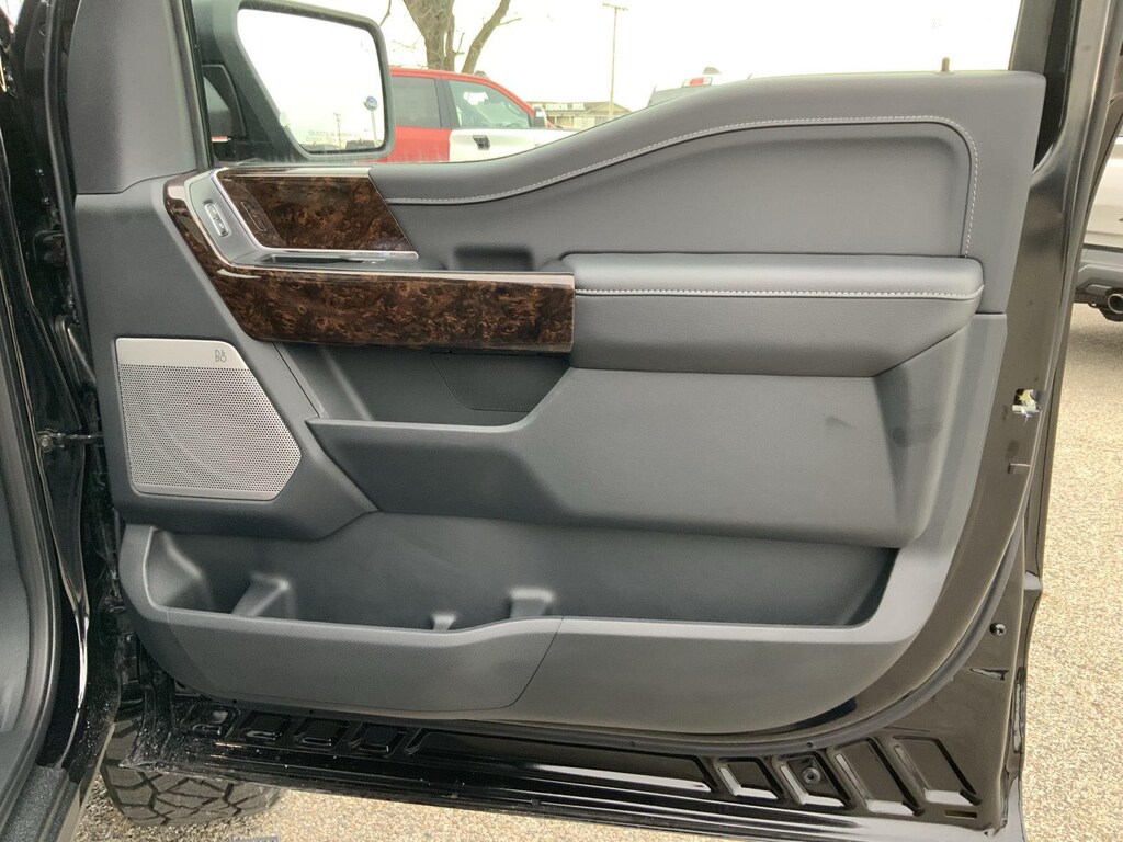 - Includes vehicle with standard equipment, 20 x 8.5 inch chrome PVD wheels with 275/60R20 all-season tires, 6 inch chrome angular running boards, chrome door handles, black mesh grille with chrome center bar, chrome exhaust tip, manual-folding power heated side view mirrors with chrome mirror caps and integrated turn signals, auto-dimming rearview mirror, Intelligent Access with push button start, remote engine start, remote tailgate release, dual-zone electronic automatic temperature control, cloth 40/console/40 front seat and flow-through console with steering column-mounted shift, 10-way power adjustable driver seat with power lumbar, 8-way power adjustable passenger seat with power lumbar, heated front seats, power adjustable pedals with memory, interior work surface, 110V/400W outlet in the instrument panel and pickup bed, partitioned lockable fold-flat storage, power-sliding rear window, B&O 640-watt sound system with 8 speakers and subwoofer, Ford Connectivity Package 1 year subscription (includes connected navigation, unlimited wi-fi hotspot, audio and video streaming, voice assistant, and entertainment connectivity), 360 degree camera, front parking sensors, adaptive cruise control with stop-and-go, lane centering, automatic emergency braking with oncoming traffic detection, Pro Trailer Backup Assist, and Pro Trailer Hitch Assist.