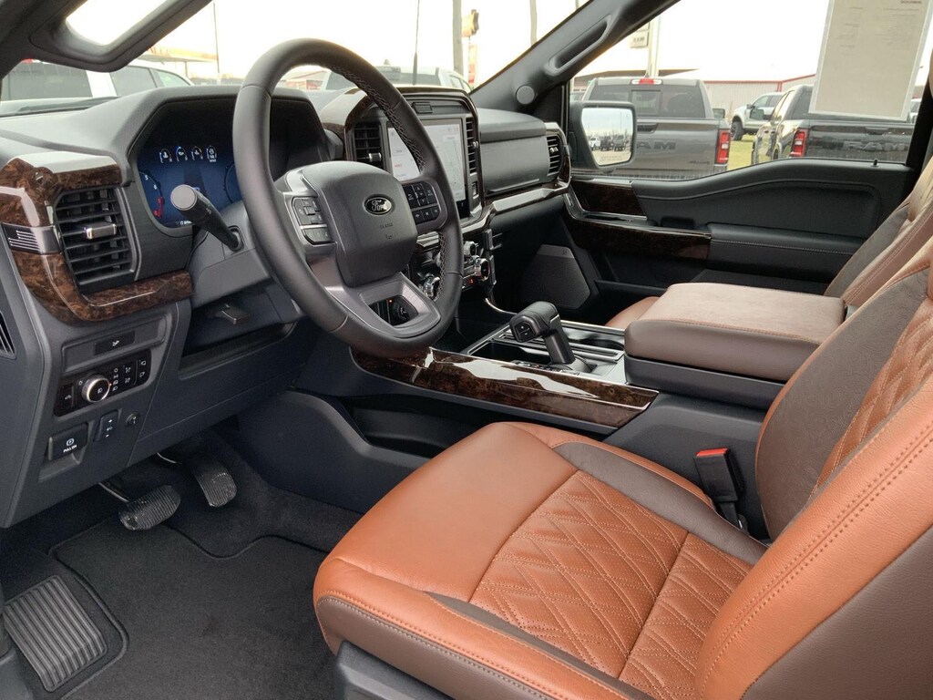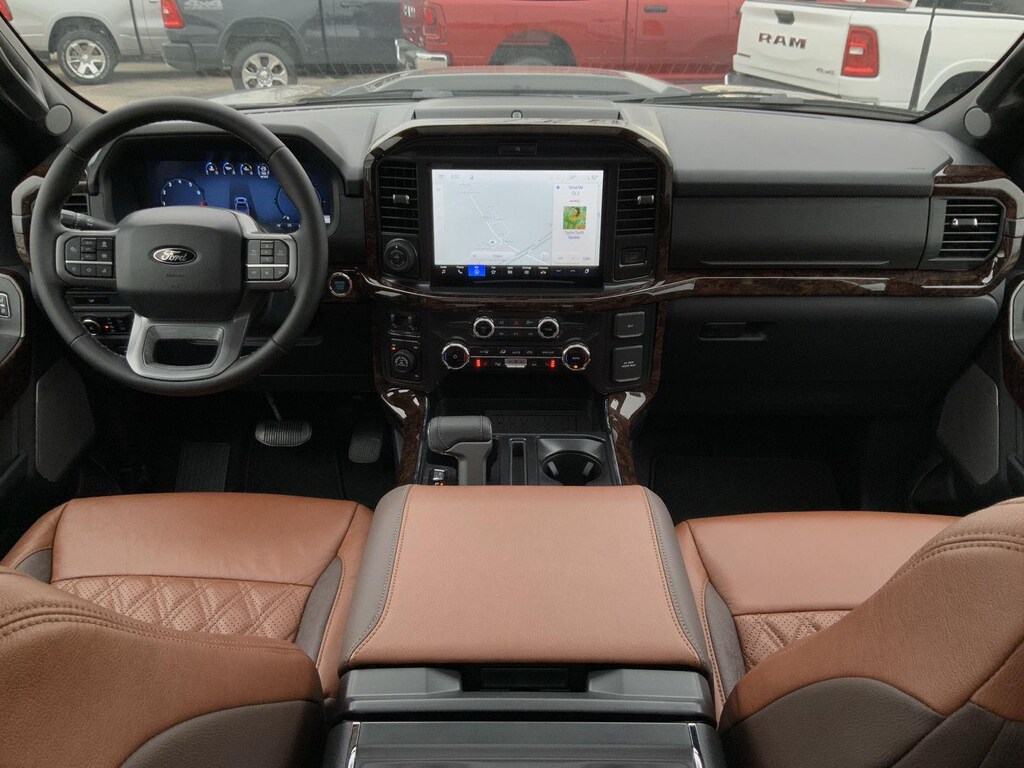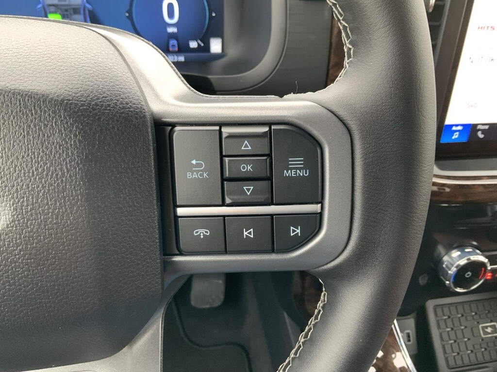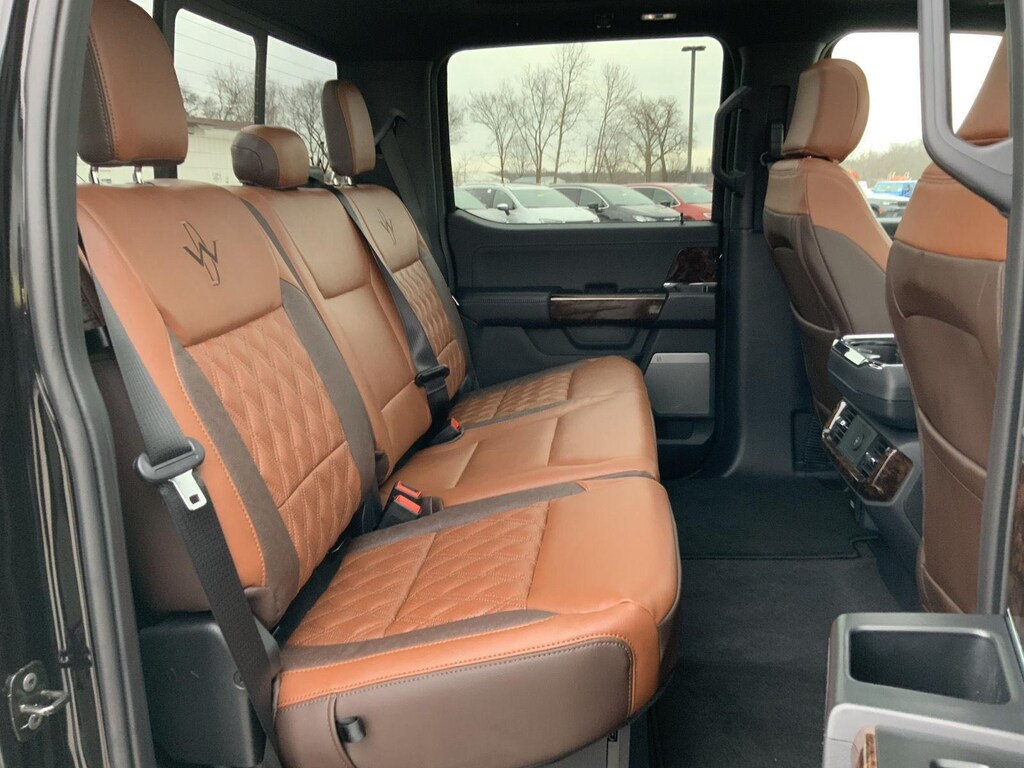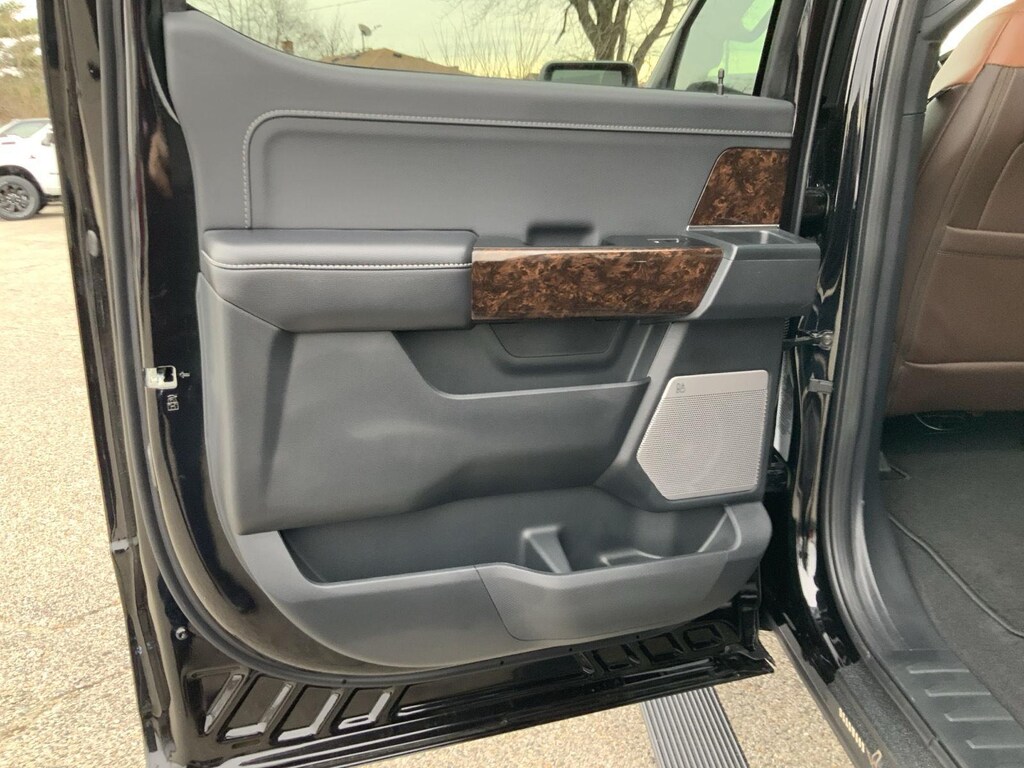 - Includes vehicle with standard equipment, 20 x 8.5 inch chrome PVD wheels with 275/60R20 all-season tires, 6 inch chrome angular running boards, chrome door handles, black mesh grille with chrome center bar, chrome exhaust tip, manual-folding power heated side view mirrors with chrome mirror caps and integrated turn signals, auto-dimming rearview mirror, Intelligent Access with push button start, remote engine start, remote tailgate release, dual-zone electronic automatic temperature control, cloth 40/console/40 front seat and flow-through console with steering column-mounted shift, 10-way power adjustable driver seat with power lumbar, 8-way power adjustable passenger seat with power lumbar, heated front seats, power adjustable pedals with memory, interior work surface, 110V/400W outlet in the instrument panel and pickup bed, partitioned lockable fold-flat storage, power-sliding rear window, B&O 640-watt sound system with 8 speakers and subwoofer, Ford Connectivity Package 1 year subscription (includes connected navigation, unlimited wi-fi hotspot, audio and video streaming, voice assistant, and entertainment connectivity), 360 degree camera, front parking sensors, adaptive cruise control with stop-and-go, lane centering, automatic emergency braking with oncoming traffic detection, Pro Trailer Backup Assist, and Pro Trailer Hitch Assist.