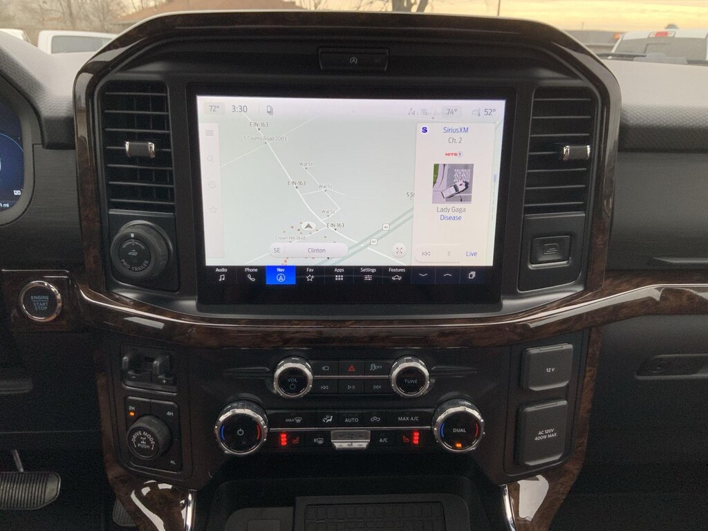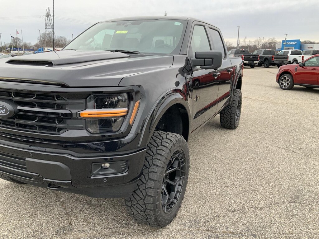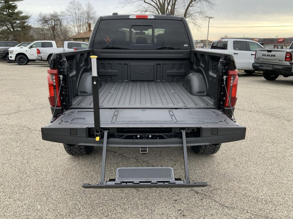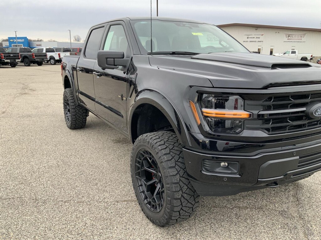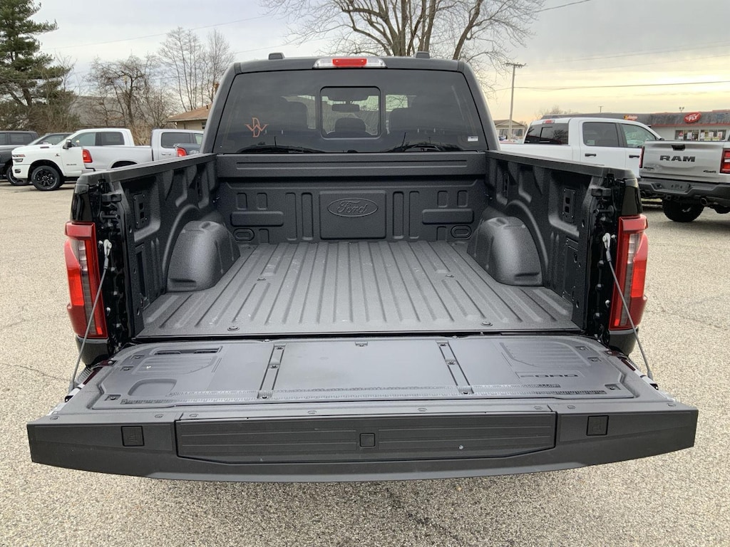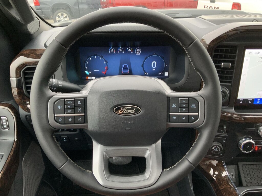 - Includes vehicle with standard equipment, 20 x 8.5 inch chrome PVD wheels with 275/60R20 all-season tires, 6 inch chrome angular running boards, chrome door handles, black mesh grille with chrome center bar, chrome exhaust tip, manual-folding power heated side view mirrors with chrome mirror caps and integrated turn signals, auto-dimming rearview mirror, Intelligent Access with push button start, remote engine start, remote tailgate release, dual-zone electronic automatic temperature control, cloth 40/console/40 front seat and flow-through console with steering column-mounted shift, 10-way power adjustable driver seat with power lumbar, 8-way power adjustable passenger seat with power lumbar, heated front seats, power adjustable pedals with memory, interior work surface, 110V/400W outlet in the instrument panel and pickup bed, partitioned lockable fold-flat storage, power-sliding rear window, B&O 640-watt sound system with 8 speakers and subwoofer, Ford Connectivity Package 1 year subscription (includes connected navigation, unlimited wi-fi hotspot, audio and video streaming, voice assistant, and entertainment connectivity), 360 degree camera, front parking sensors, adaptive cruise control with stop-and-go, lane centering, automatic emergency braking with oncoming traffic detection, Pro Trailer Backup Assist, and Pro Trailer Hitch Assist.