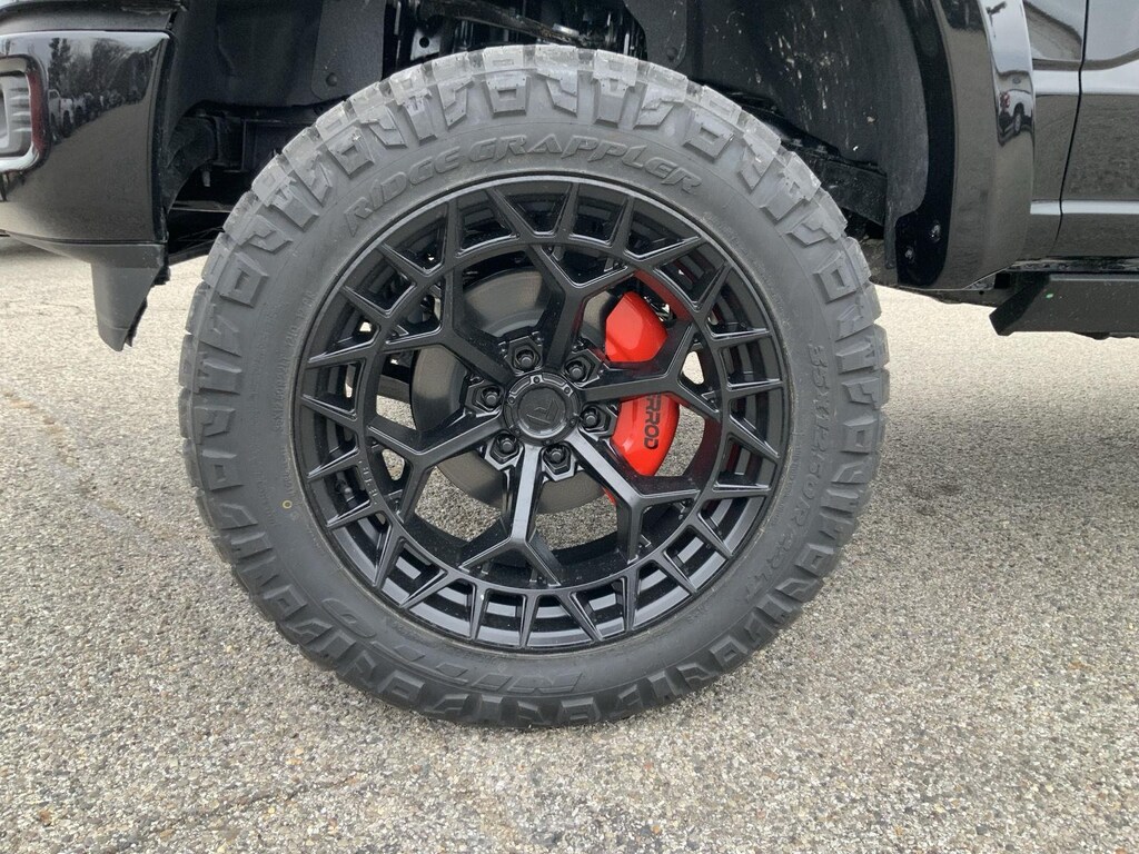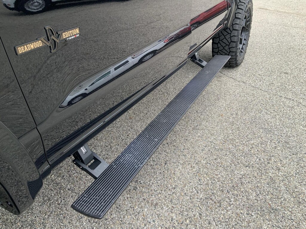 - Includes 20 inch gloss black aluminum wheels, black 6 in. running boards, body-color front and rear bumpers, black grille, gray box side decal, black exterior badging, dual exhaust with black tips, and black interior appliques.