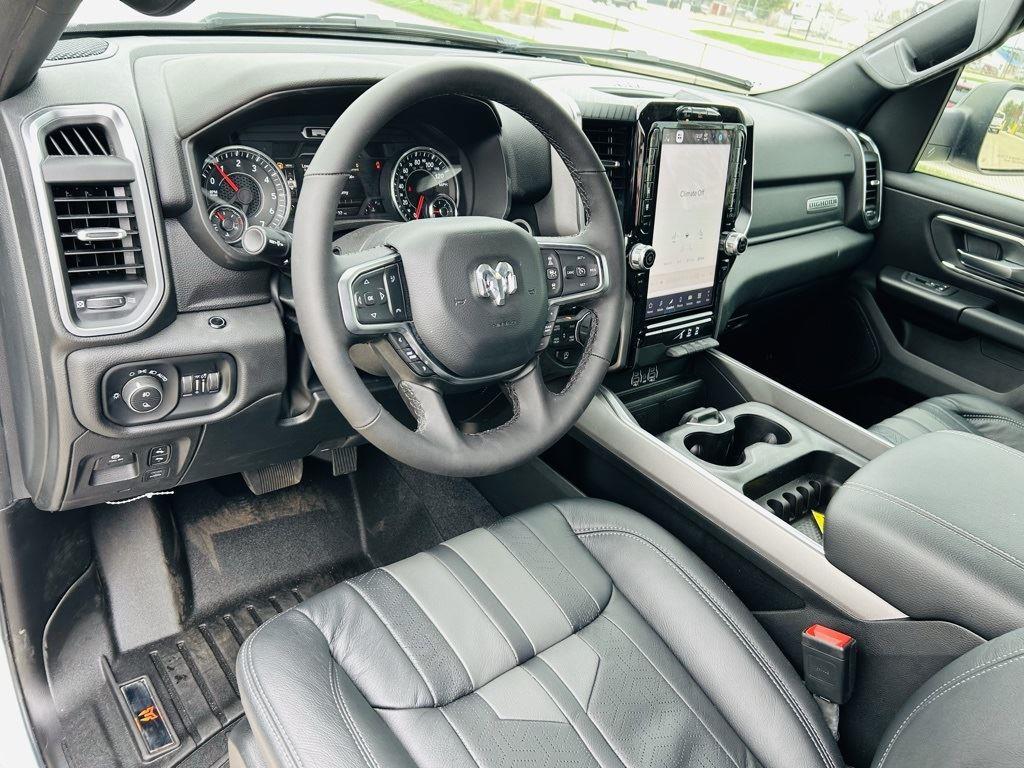 ENGINE: 3.0L I6 HURRICANE SO TWIN TURBO ESS, TRANSMISSION: 8-SPEED AUTOMATIC (8HP75), QUICK ORDER PACKAGE 21Z BIG HORN, 3.92 REAR AXLE RATIO, WHEELS: 20 X 9 ALUMINUM CHROME CLAD (WRK), TIRES: 275/55R20 OWL ALL SEASON, BRIGHT WHITE CLEARCOAT, BLACK, DELUXE CLOTH BUCKET SEATS, GVWR: 7,100 LBS, BED UTILITY GROUP, BIG HORN LEVEL 2 EQUIPMENT GROUP, SPORT APPEARANCE PACKAGE, ANTI-SPIN DIFFERENTIAL REAR AXLE, 33 GALLON FUEL TANK, DUAL-PANE PANORAMIC SUNROOF, FRONT LICENSE PLATE BRACKET, RADIO: UCONNECT 5 NAV W/12.0 DISPLAY, 9 AMPLIFIED SPEAKERS W/SUBWOOFER, MOPAR FRONT & REAR RUBBER FLOOR MATS, REAR UNDERSEAT COMPARTMENT STORAGE