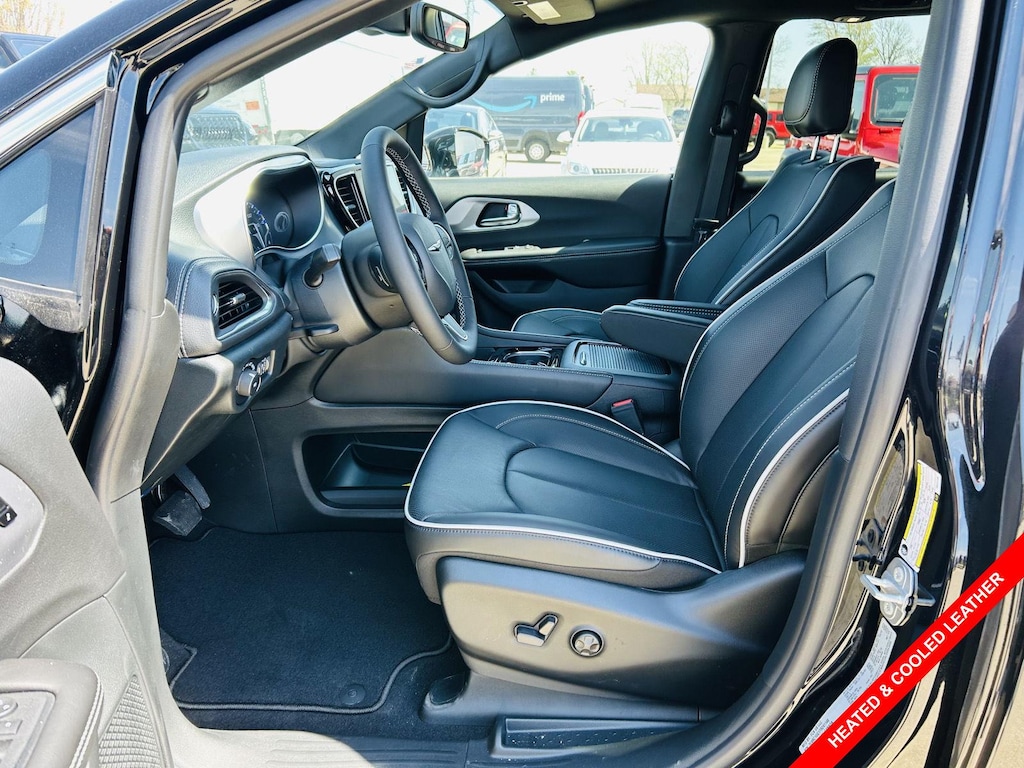 Step inside the 2026 Chrysler Pacifica Limited and experience a world of refined comfort and convenience. The Nappa leather front seat upholstery in Black exudes sophistication, while features like Driver And Passenger Heated and Ventilated Front Seats ensure optimal comfort in any weather. The Heated TechnoLeather Leatherette Steering Wheel adds a touch of luxury, while the Power driver seat controls and Power passenger seat controls allow you to find the perfect seating position. The Power Sliding Rear Doors and Power Liftgate Rear Cargo Access make loading and unloading cargo a breeze, while the Express Open/Close Sliding And Tilting Glass 1st And 2nd Row Sunroof w/Power Sunshade brings the outdoors in. With Rear climate control Rear climate control system with separate controls and Rear headliner/pillar ducts Rear headliner/pillar climate control ducts, everyone stays comfortable, no matter where they're seated. The Mini Overhead Console w/Storage and 2 Seatback Storage Pockets help keep the cabin organized, while the Piano Black Console Insert and Piano Black/Metal-Look Interior Accents add a touch of elegance.