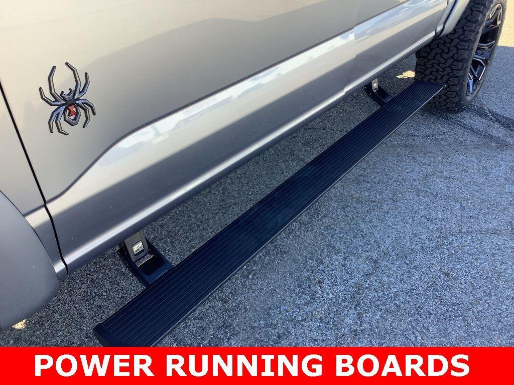 6 inch Suspension Lift, 22 inch Black Off-Road Wheels, 35 inch Premium All-Terrain Tires, Black Widow Caliper Covers, Body Color Fender Flares, Power Running Boards, Performance Exhaust with Black Powder Coated Dual Tips, Black Widow Stitched Headrests, Custom Stitched Leather Seat Covers, Red LED Interior Lighting, Black Widow LED Puddle Lights, Black Widow Exterior Badging