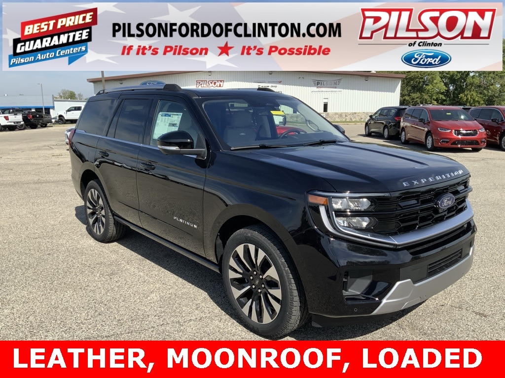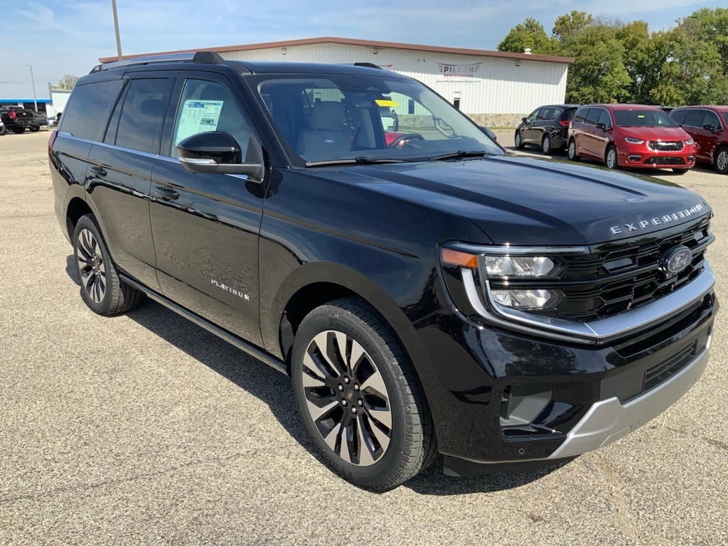 2025 Ford Expedition Platinum 3.5L V6 10-Speed Automatic Agate Black Metallic 10 Speakers, 2nd Row Power-Folding Captain's Chairs, Adjustable pedals, Apple CarPlay/Android Auto, B&O Sound System by Bang & Olufsen, Back Up Camera, BlueCruise Equipped (1-Year Plan), Electronic Stability Control, Emergency communication system: 911 Assist, Front dual zone A/C, Fully automatic headlights, Garage door transmitter, GPS / Navigation, Heated & Ventilated Leather Front Captain's Chairs, Heated door mirror, Heated second row seats, Heated steering wheel, High Flow Exhaust System, Low tire pressure warning, Memory seat, Pedal memory, Power door mirrors, Power driver seat, Power moonroof: Vista Roof, Power passenger seat, Rain sensing wipers, Rear air conditioning, Rear window defroster, SiriusXM w/360L, Wheels: 22" Ebony Bright Machined Face Aluminum.