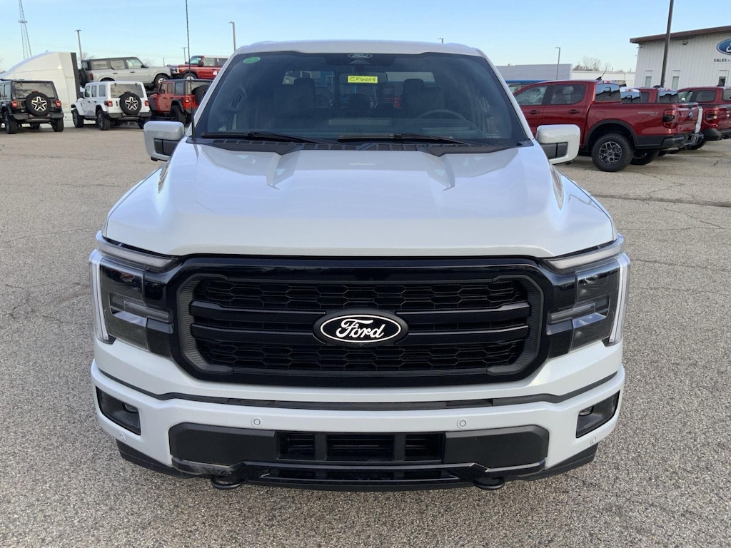 The 2026 Ford F-150 LARIAT is engineered for performance, boasting an EcoBoost 3.5L V-6 port/direct injection, DOHC, variable valve control, twin turbo, regular unleaded, engine with 400HP. Paired with an ELECTRONIC 10-SPEED AUTOMATIC transmission, this truck delivers smooth and responsive power. The Four Wheel Drive drivetrain, featuring Part and full-time 4WD and Driver selectable drivetrain mode, ensures you're ready for any terrain, whether you're navigating muddy farm roads or snowy streets in Clinton, IN. The Rear locking differential Driver selectable rear locking differential provides added traction when you need it most. The Suspension Off-road ride suspension ensures a comfortable ride, even on rough surfaces.