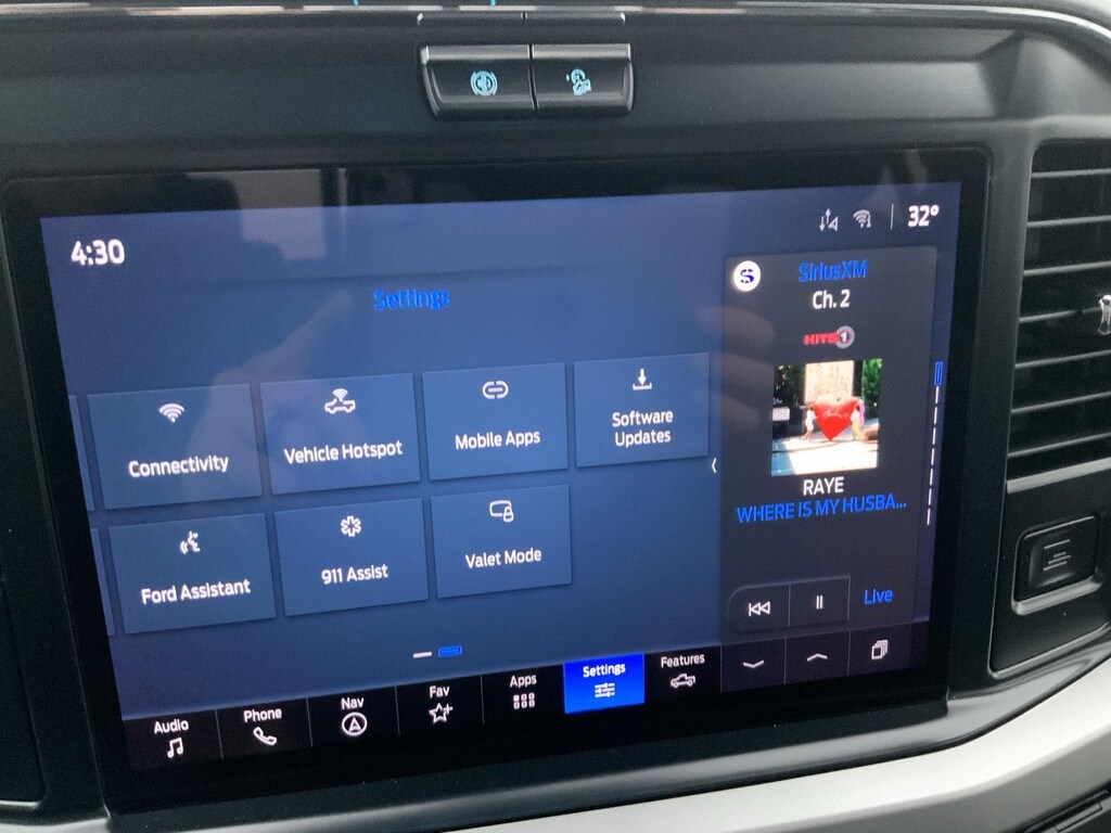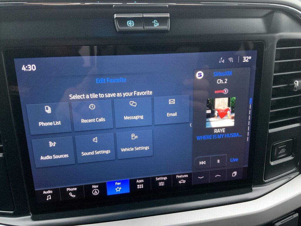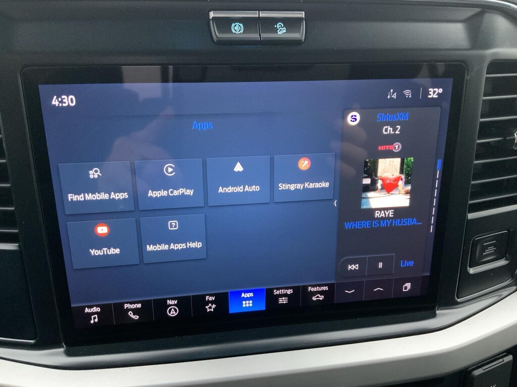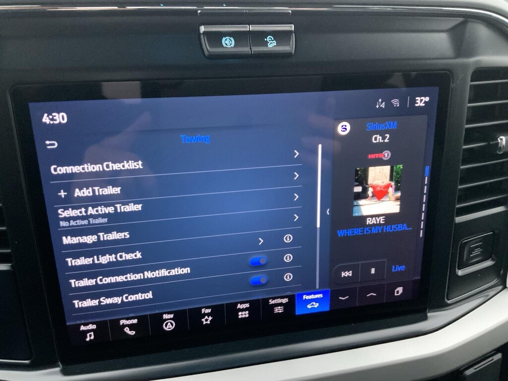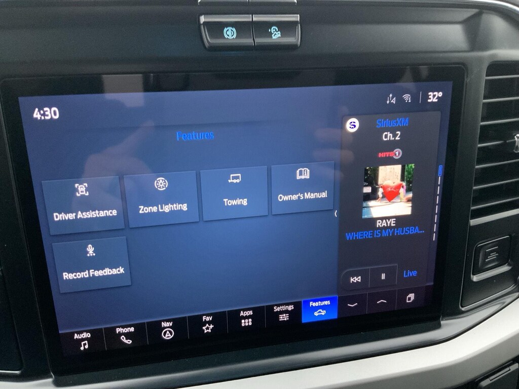 - Includes SYNC 4 with enhanced conversational voice recognition and 12-inch LCD capacitive touchscreen, wireless Apple CarPlay, wireless Android Auto, 3-month trial for SiriusXM with 360L, 1-year subscription to Ford Connectivity Package which includes connected navigation and voice assistant, B&O 640-watt sound system with 7 speakers and subwoofer, HD radio, heated front seats, electrochromic self-dimming rearview mirror, remote start system, intelligent access with push button start, remote tailgate release, body-color door handles, bright chrome grille with chrome inserts, LED box lighting, LED reflector headlamps, LED fog lamps, LED CHMSL, PowerScope power-folding power heated side view tow mirrors with LED integrated turn signals and security approach lamps, utility lighting system, blind spot information system (BLIS) with cross-traffic alert and trailer coverage, rear parking sensors, reverse brake assist, automatic high beam, and 360-degree camera.