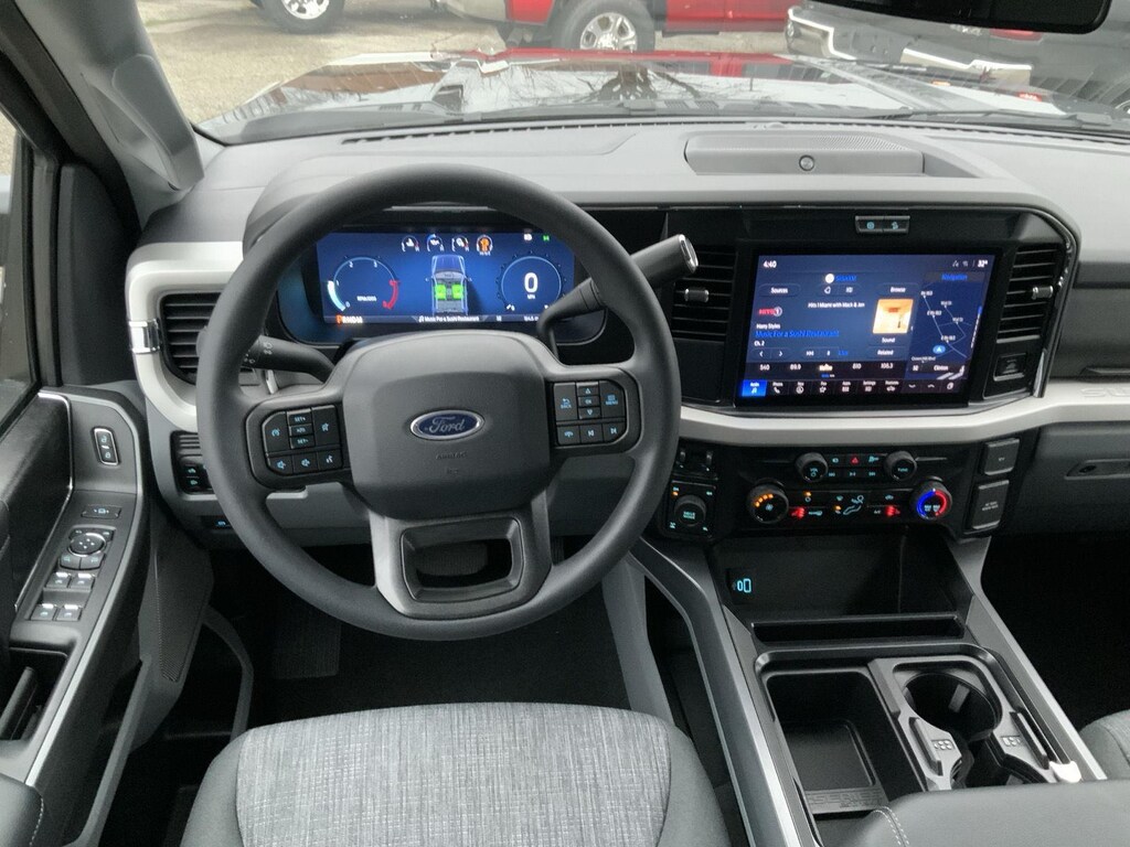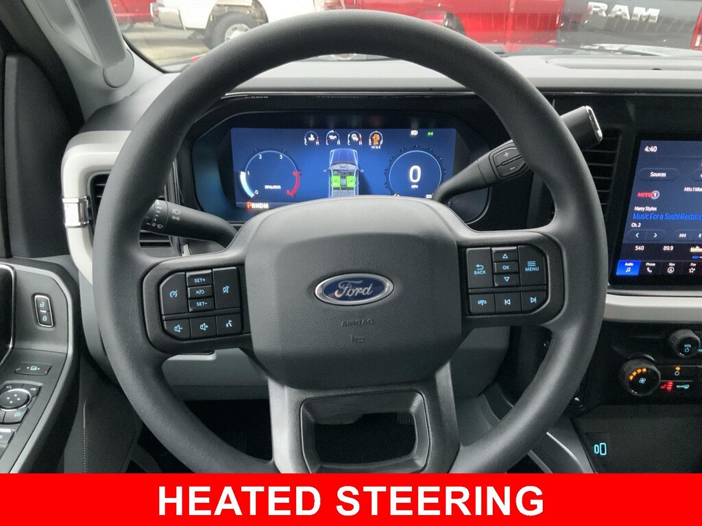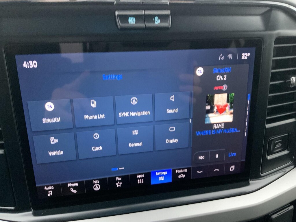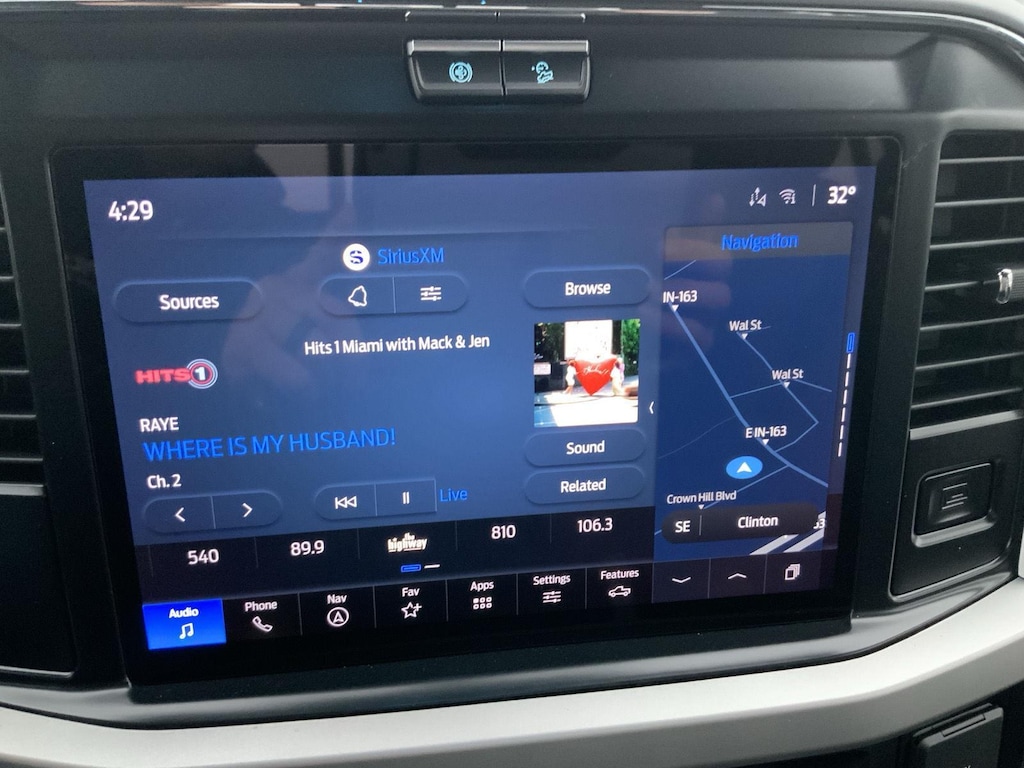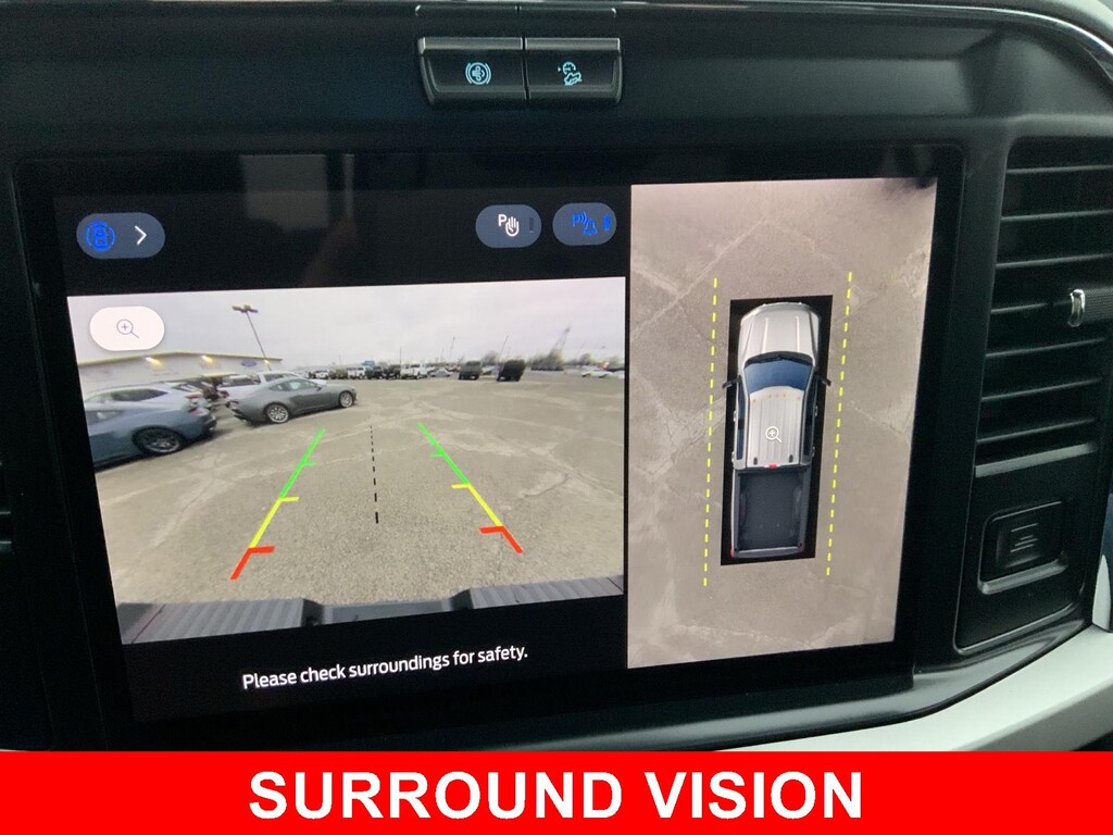 - Includes SYNC 4 with enhanced conversational voice recognition and 12-inch LCD capacitive touchscreen, wireless Apple CarPlay, wireless Android Auto, 3-month trial for SiriusXM with 360L, 1-year subscription to Ford Connectivity Package which includes connected navigation and voice assistant, B&O 640-watt sound system with 7 speakers and subwoofer, HD radio, heated front seats, electrochromic self-dimming rearview mirror, remote start system, intelligent access with push button start, remote tailgate release, body-color door handles, bright chrome grille with chrome inserts, LED box lighting, LED reflector headlamps, LED fog lamps, LED CHMSL, PowerScope power-folding power heated side view tow mirrors with LED integrated turn signals and security approach lamps, utility lighting system, blind spot information system (BLIS) with cross-traffic alert and trailer coverage, rear parking sensors, reverse brake assist, automatic high beam, and 360-degree camera.