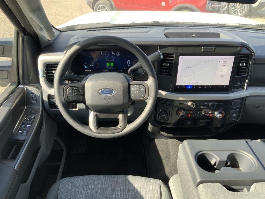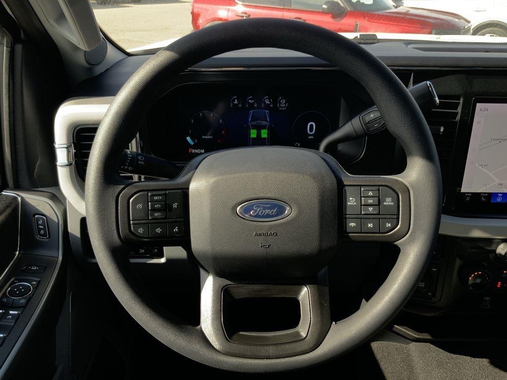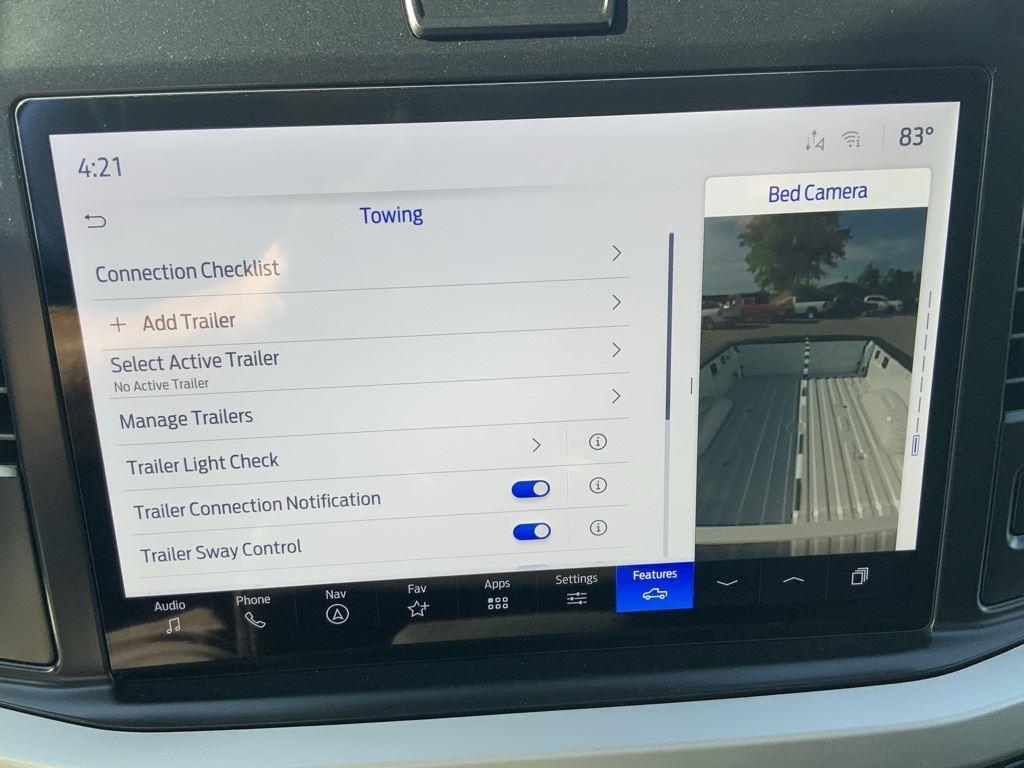 - Includes SYNC 4 with enhanced conversational voice recognition and 12-inch LCD capacitive touchscreen, wireless Apple CarPlay, wireless Android Auto, 3-month trial for SiriusXM with 360L, 1-year subscription to Ford Connectivity Package which includes connected navigation and voice assistant, B&O 640-watt sound system with 7 speakers and subwoofer, HD radio, heated front seats, electrochromic self-dimming rearview mirror, remote start system, intelligent access with push button start, remote tailgate release, body-color door handles, bright chrome grille with chrome inserts, LED box lighting, LED reflector headlamps, LED fog lamps, LED CHMSL, PowerScope power-folding power heated side view tow mirrors with LED integrated turn signals and security approach lamps, utility lighting system, blind spot information system (BLIS) with cross-traffic alert and trailer coverage, rear parking sensors, reverse brake assist, automatic high beam, and 360-degree camera.