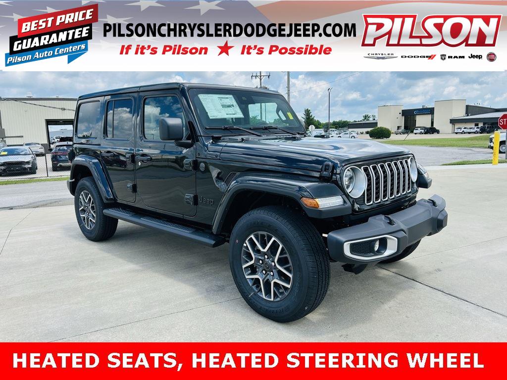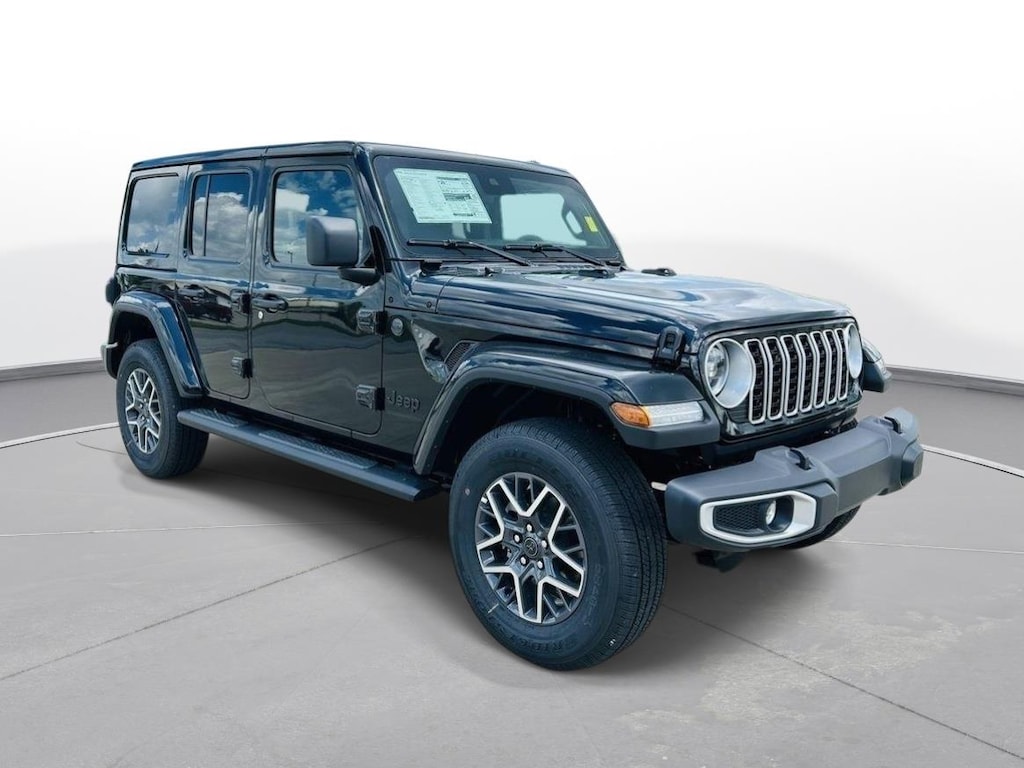 The 2025 Jeep Wrangler 4-Door Sahara 4x4 commands attention with its iconic and rugged design. Finished in a sleek Black Clearcoat exterior, this Wrangler exudes confidence and capability. The Body-Color Grille w/Colored Accents adds a touch of style, while the Black Wheel Well Trim and Body-Colored Fender Flares enhance its off-road aesthetic. The 18' X 7.5' Machine/painted Gray Wheels provide a bold and sporty look. The Sunrider manual convertible roof allows you to easily enjoy open-air driving. The Auto On/Off Reflector Led Low/High Beam Daytime Running Headlamps w/Delay-Off provide excellent visibility in all conditions, while the Front Fog Lamps enhance visibility in inclement weather. The Spare tire Full-size spare tire with aluminum wheel ensures you're prepared for unexpected situations.