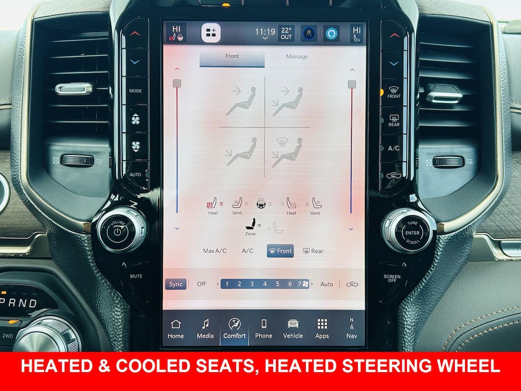 Step inside the Bison Brown leather-clad cabin and experience unparalleled comfort. The Driver And Passenger Heated and Ventilated Front Seats ensure optimal comfort in any weather, while the Heated Leather/Genuine Wood Steering Wheel adds a touch of luxury. The Power Adjustable Pedals and Power driver seat controls allow you to find the perfect driving position. Enjoy the convenience of Power Running Boards and the practicality of the Power Rear Window w/Defroster. With features like Automatic climate control and Dual-zone front climate control, everyone stays comfortable. The Massaging driver seat and Massaging front passenger seat provides ultimate relaxation on long drives.