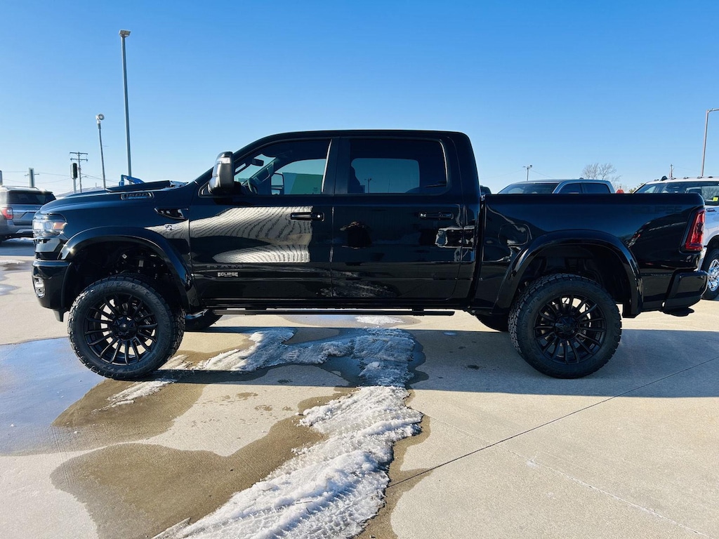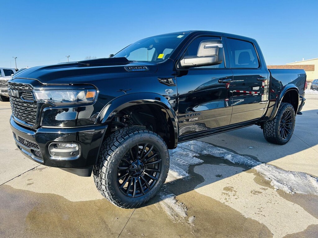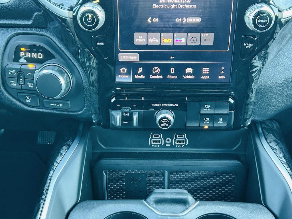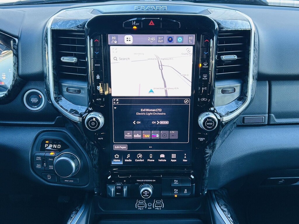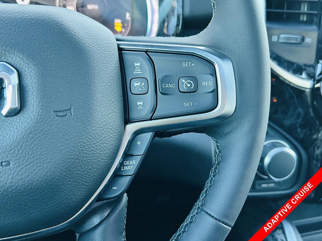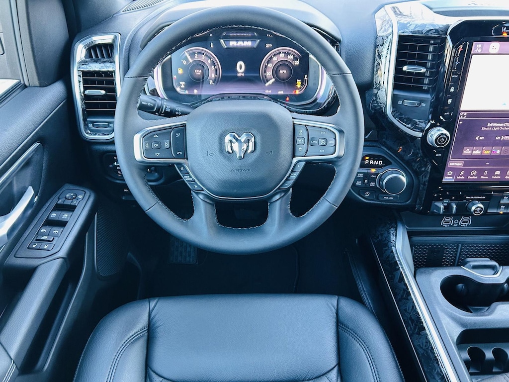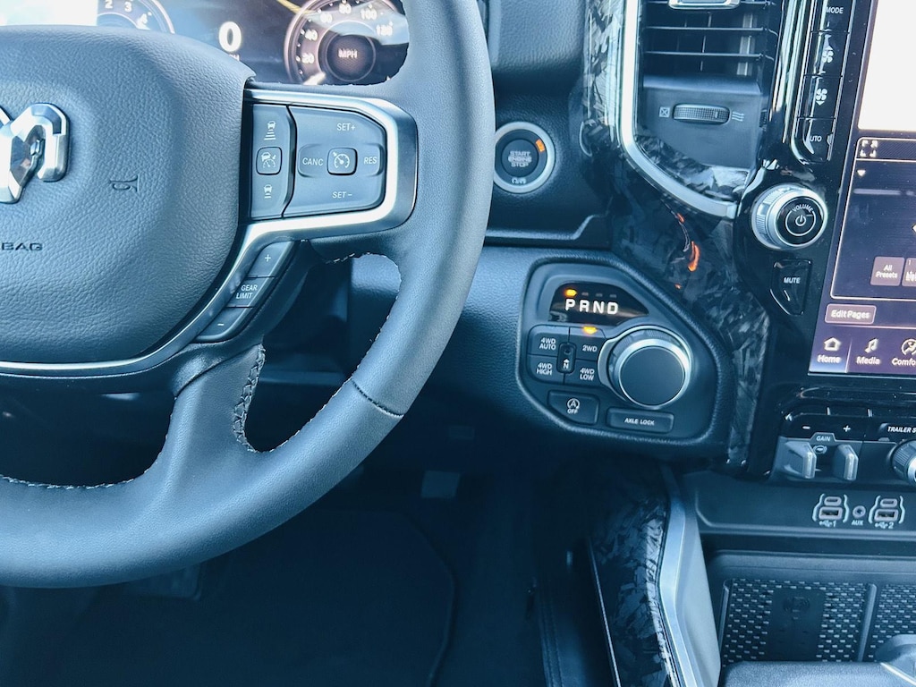 ENGINE: 5.7L V8 HEMI MDS VVT ETORQUE, TRANSMISSION: 8-SPEED AUTOMATIC (8HP75), QUICK ORDER PACKAGE 27Z BIG HORN, 3.92 REAR AXLE RATIO, WHEELS: 20 X 9.0 ALUMINUM PAINTED CLAD, TIRES: 275/55R20 OWL ALL SEASON, DIAMOND BLACK CRYSTAL PEARLCOAT, BLACK, DELUXE CLOTH BUCKET SEATS, GVWR: 7,100 LBS, BED UTILITY GROUP, TRAILER TOW GROUP, NIGHT EDITION, BIG HORN LEVEL 2 EQUIPMENT GROUP, TRAILER BRAKE CONTROL, 33 GALLON FUEL TANK, E-LOCKER REAR AXLE, DUAL-PANE PANORAMIC SUNROOF, BLACK TRAILER TOW POWER MIRRORS, FRONT LICENSE PLATE BRACKET, REAR WHEELHOUSE LINERS, RADIO: UCONNECT 5 NAV W/12.0 DISPLAY, 9 AMPLIFIED SPEAKERS W/SUBWOOFER, CLUSTER 12 TFT COLOR DISPLAY