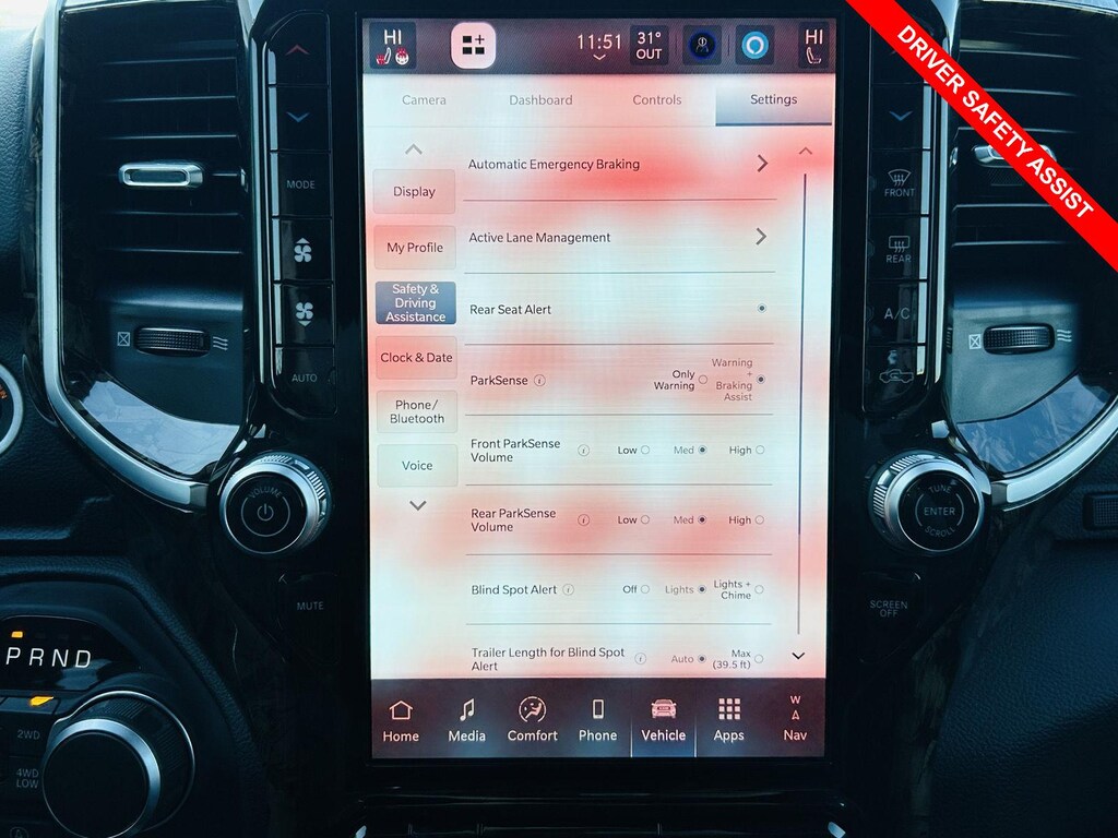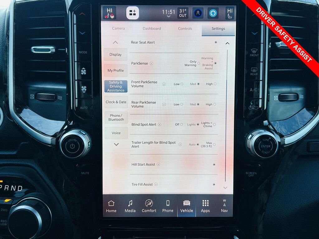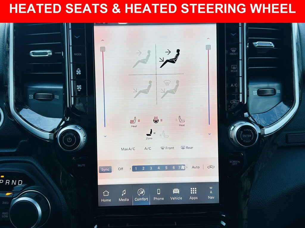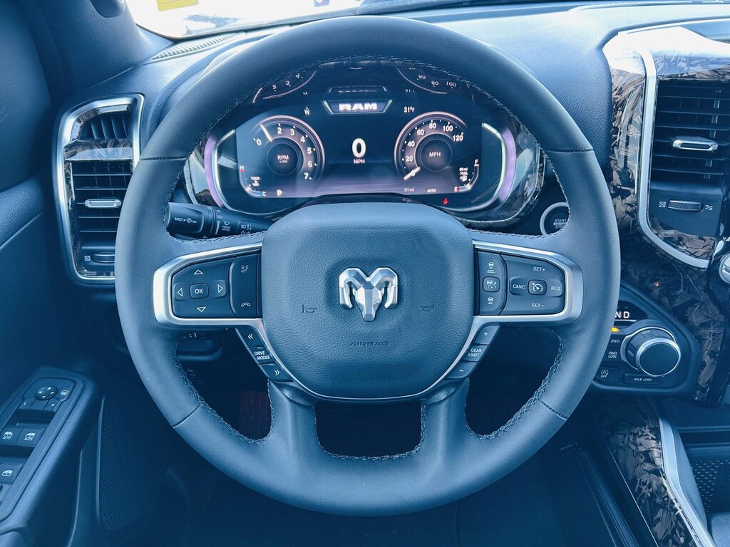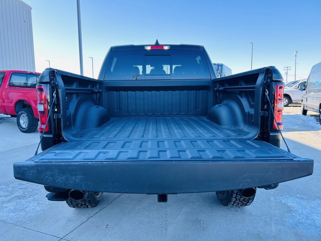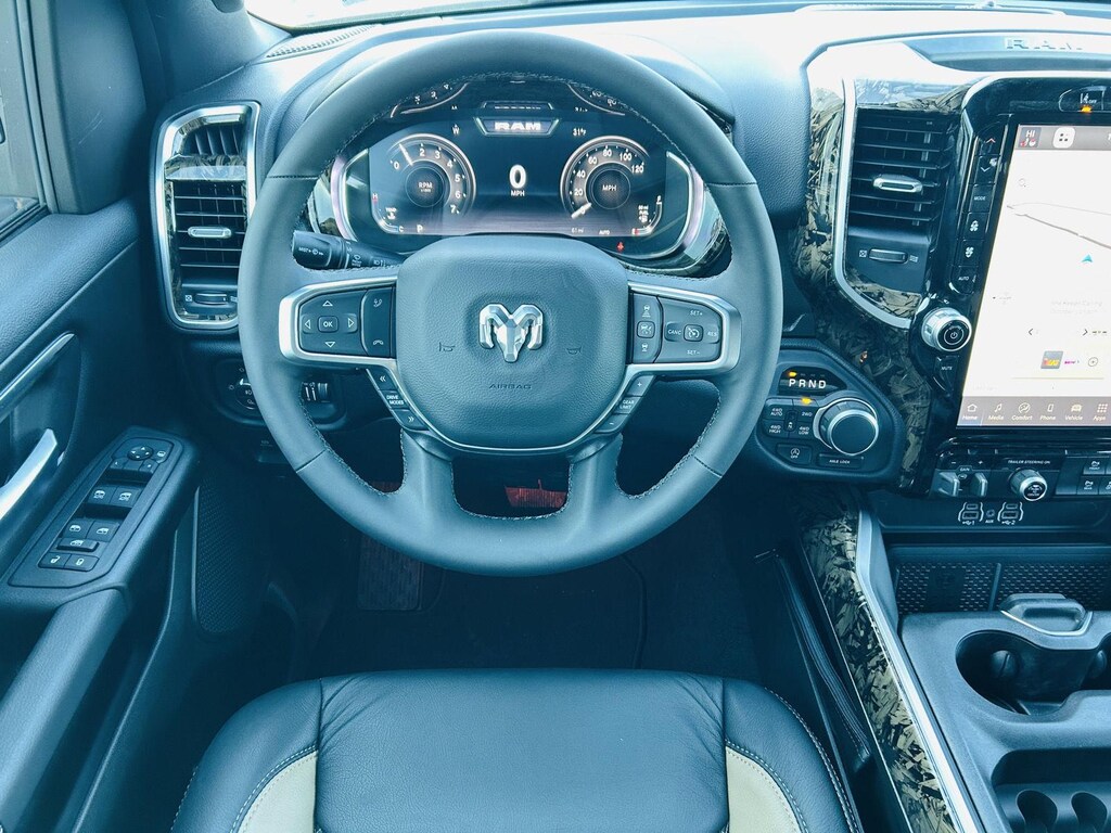 ENGINE: 5.7L V8 HEMI MDS VVT ETORQUE, TRANSMISSION: 8-SPEED AUTOMATIC (8HP75), QUICK ORDER PACKAGE 27Z BIG HORN, 3.92 REAR AXLE RATIO, WHEELS: 20 X 9.0 ALUMINUM PAINTED CLAD, TIRES: 275/55R20 OWL ALL SEASON, DIAMOND BLACK CRYSTAL PEARLCOAT, BLACK, DELUXE CLOTH BUCKET SEATS, GVWR: 7,100 LBS, BED UTILITY GROUP, TRAILER TOW GROUP, NIGHT EDITION, BIG HORN LEVEL 2 EQUIPMENT GROUP, TRAILER BRAKE CONTROL, 33 GALLON FUEL TANK, E-LOCKER REAR AXLE, DUAL-PANE PANORAMIC SUNROOF, BLACK TRAILER TOW POWER MIRRORS, FRONT LICENSE PLATE BRACKET, REAR WHEELHOUSE LINERS, RADIO: UCONNECT 5 NAV W/12.0 DISPLAY, 9 AMPLIFIED SPEAKERS W/SUBWOOFER, CLUSTER 12 TFT COLOR DISPLAY