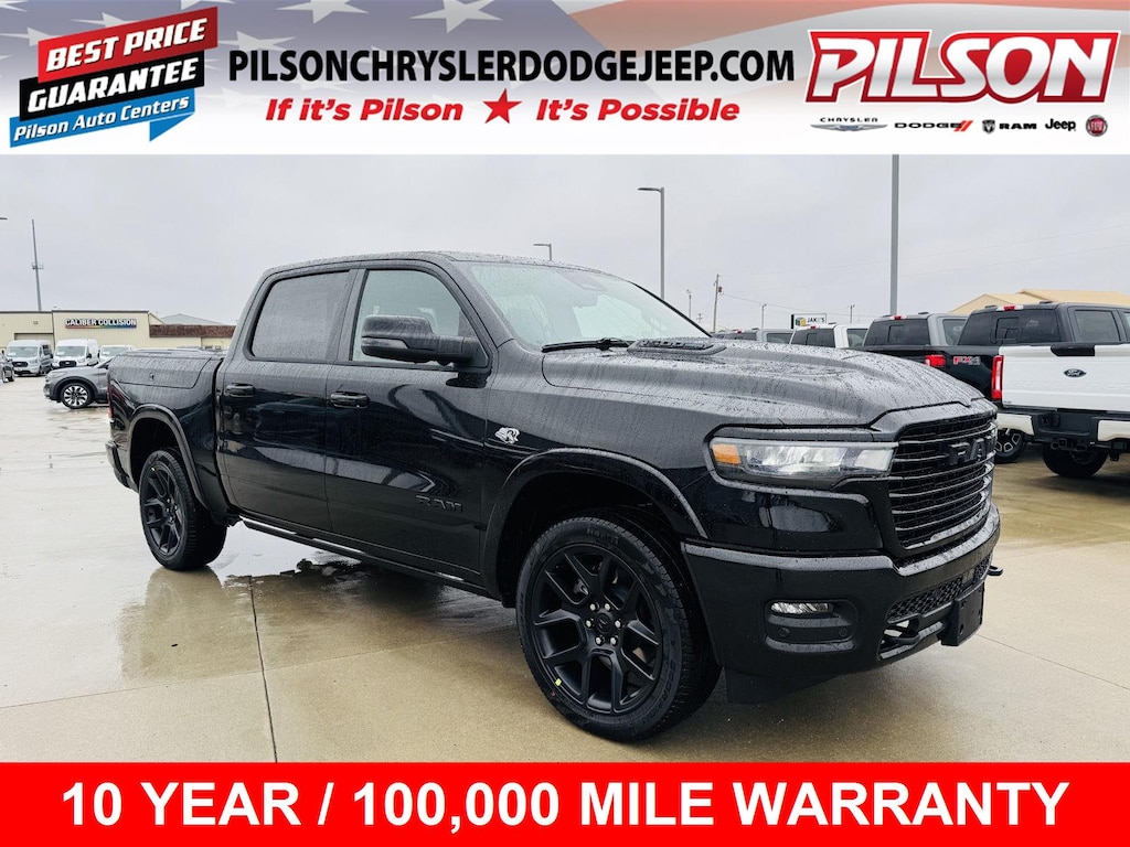 ENGINE: 5.7L V8 HEMI MDS VVT ETORQUE, TRANSMISSION: 8-SPEED AUTOMATIC (8HP75), QUICK ORDER PACKAGE 27H LARAMIE, 3.92 REAR AXLE RATIO, WHEELS: 22 X 9 FORGED ALUMINUM, TIRES: 285/45R22XL BSW ALL SEASON, DIAMOND BLACK CRYSTAL PEARLCOAT, BLACK, LEATHER TRIMMED BUCKET SEATS, ADVANCED SAFETY GROUP II, TECHNOLOGY GROUP, BED UTILITY GROUP, PROTECTION GROUP, LARAMIE LEVEL 2 EQUIPMENT GROUP, NIGHT EDITION, ANTI-SPIN DIFFERENTIAL REAR AXLE, ENGINE BLOCK HEATER, MYFLEXCARE SERVICE PLAN, TRAILER BRAKE CONTROL, 33 GALLON FUEL TANK, DUAL-PANE PANORAMIC SUNROOF, FRONT LICENSE PLATE BRACKET, POWER DEPLOYABLE RUNNING BOARDS, REAR WHEELHOUSE LINERS, RADIO: UCONNECT 5 NAV W/14.4 DISPLAY, MOPAR FRONT & REAR RUBBER FLOOR MATS, RAMBOX CARGO MANAGEMENT SYSTEM