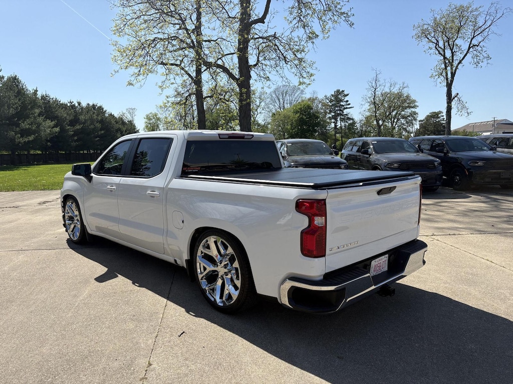 The Summit White exterior of this Silverado LT is accented by Chrome front and rear bumpers and a Black grille with chrome surround, giving it a classic and commanding presence. It sits on 20 x 9-inch machined aluminum wheels with painted accents, providing a tall and capable stance. Functionality is found in every corner, from the 2 front tow hooks to the CornerStep rear bumper that makes accessing the bed a breeze. The LED low and high beam headlights and LED daytime running lights ensure excellent visibility regardless of the time of day.