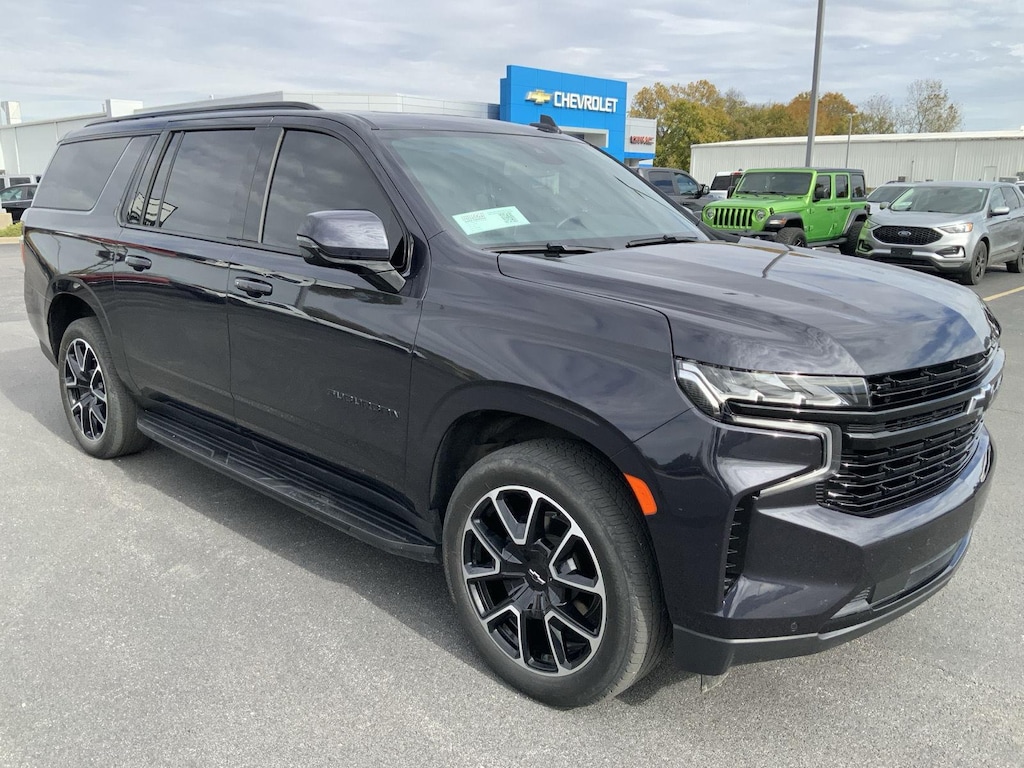 SUSPENSION, PREMIUM SMOOTH RIDE, ENGINE, 5.3L ECOTEC3 V8, TRANSMISSION, 10-SPEED AUTOMATIC, REAR AXLE, 3.23 RATIO, WHEELS, 22" X 9" (55.9 CM X 22.9 CM) BRIGHT MACHINED HIGH-GLOSS BLACK PAINTED, DARK ASH METALLIC, SEATS, FRONT BUCKET, JET BLACK/VICTORY RED, PERFORATED LEATHER SEATING SURFACES 1ST AND 2ND ROW, AUDIO SYSTEM, CHEVROLET INFOTAINMENT 3 PREMIUM SYSTEM WITH GOOGLE BUILT-IN, LUXURY PACKAGE, DRIVER ALERT PACKAGE, SUNROOF, POWER PANORAMIC, DUAL-PANE, TILT-SLIDING, MIRRORS, OUTSIDE HEATED POWER-ADJUSTABLE, POWER-FOLDING, DRIVER-SIDE AUTO-DIMMING, SEATS, HEATED SECOND ROW OUTBOARD SEATS, SEATS, SECOND ROW BUCKET, POWER RELEASE, SEATS, THIRD ROW 60/40 SPLIT-BENCH, POWER FOLDING, STEERING COLUMN, POWER TILT AND TELESCOPIC, STEERING WHEEL, HEATED, ADAPTIVE CRUISE CONTROL, MEMORY SETTINGS, RECALLS 2 "DRIVER" PRESETS FOR POWER DRIVER SEAT, OUTSIDE REARVIEW MIRRORS AND POWER AND TILT AND TELESCOPIC STEERING COLUMN, ENHANCED AUTOMATIC EMERGENCY BRAKING, HD SURROUND VISION, REAR CROSS TRAFFIC ALERT, REAR PEDESTRIAN ALERT, LANE CHANGE ALERT WITH SIDE BLIND ZONE ALERT