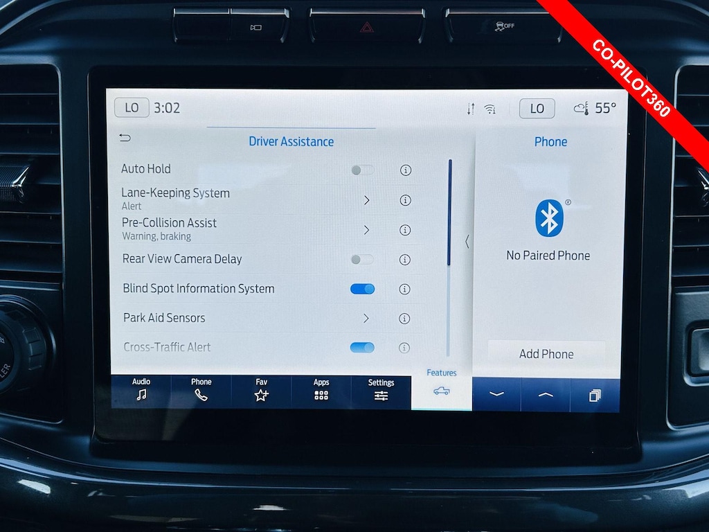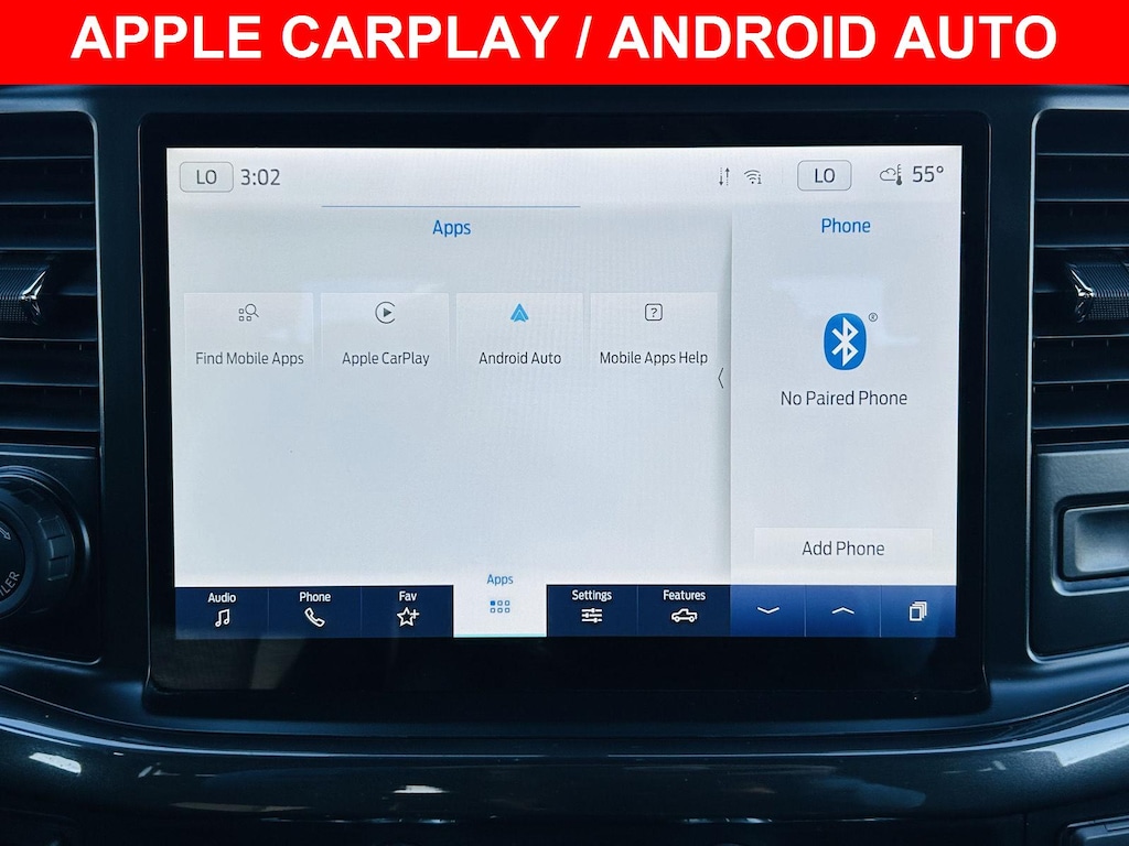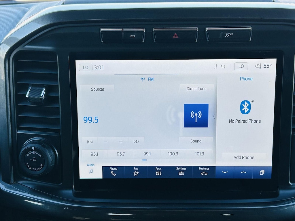 - Includes vehicle with standard equipment, SYNC 4 with enhanced conversational voice recognition, 12 in. LCD capacitive touchscreen, information on demand panel, 8 inch productivity screen in instrument cluster, SiriusXM with 360L, connected navigation, wireless Apple CarPlay, wireless Android Auto, cloud connected, AppLink, 911 Assist, 7 speakers, digital owners manual, dual-zone electronic automatic temperature control, 10-way power adjustable front seats with power lumbar adjustment, heated front seats, leather-wrapped steering wheel, rear under-seat storage, 110V/400W outlet in the instrument panel and pickup bed, auto-dimming rearview mirror, manual-folding power heated side view mirrors with LED integrated turn signals and security approach lamps, LED reflector headlamps, LED cornering fog lamps, Intelligent Access with push button start, remote engine start, remote tailgate release, SecuriCode keyless entry keypad, Class IV trailer hitch, 4-pin and 7-pin wiring, and smart trailer tow connector.