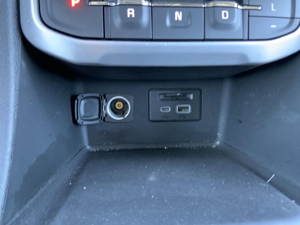 Power outlet, 120-volt, 3-prong household style located on the rear of center console