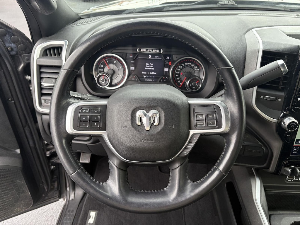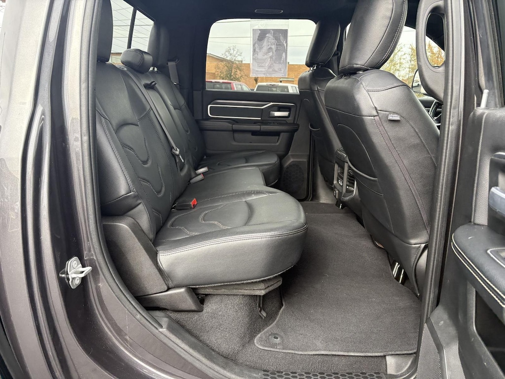 ENGINE: 6.7L I6 CUMMINS TURBO DIESEL, TRANSMISSION: 6-SPEED AUTOMATIC (68RFE), QUICK ORDER PACKAGE 2HZ BIG HORN, 3.73 AXLE RATIO, WHEELS: 18 X 8.0 POLISHED ALUMINUM, TIRES: LT275/70R18E OWL ON/OFF ROAD, GRANITE CRYSTAL METALLIC CLEARCOAT, BLACK, PREMIUM CLOTH BUCKET SEATS, LEVEL 2 EQUIPMENT GROUP, SPORT APPEARANCE PACKAGE, COLD WEATHER GROUP, BED UTILITY GROUP, TECH PACKAGE, ANTI-SPIN DIFFERENTIAL REAR AXLE, 220 AMP ALTERNATOR, ENGINE BLOCK HEATER, 5TH WHEEL/GOOSENECK TOWING PREP GROUP, TOW HOOKS, POWER SUNROOF, REAR WINDOW DEFROSTER, FRONT LICENSE PLATE BRACKET, REAR WHEELHOUSE LINERS, MOPAR SPRAY IN BEDLINER, CLEARANCE LAMPS, CTR STOP LAMP W/CARGO VIEW CAMERA, LED BED LIGHTING, RADIO: UCONNECT 12.0 W/NAVIGATION, SIRIUSXM SATELLITE RADIO, 9 ALPINE SPEAKERS W/SUBWOOFER, REMOTE START SYSTEM, I/P MOUNTED AUXILIARY SWITCHES, BLIND SPOT & CROSS PATH DETECTION, PARKSENSE FRONT/REAR PARK ASSIST SYSTEM, 115V AUXILIARY FRONT POWER OUTLET, SECURITY ALARM